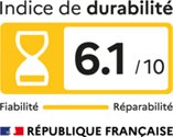 L’indice de durabilité, conçu en 2023 sur la base d'une étude scientifique et d'une démarche de coconstruction avec un panel d'usagers et d'experts, permet de vous informer sur la fiabilité et la réparabilité par une note de 0 à 10.